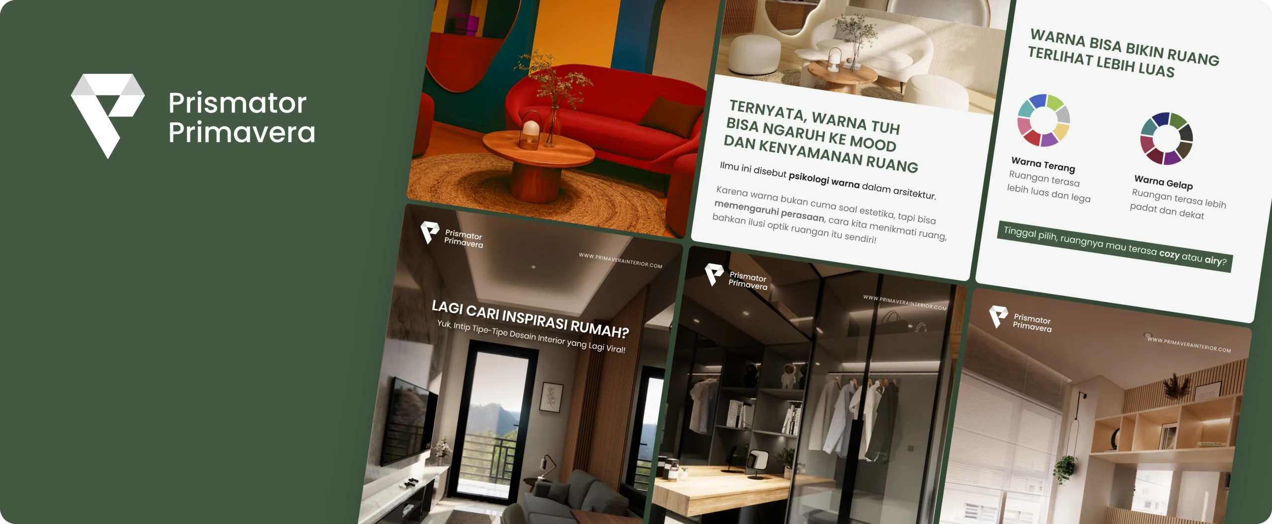 Kami membangun citra Primavera sebagai partner interior andal. Kami memperkuat pesan bahwa kualitas tetap bisa didapat dengan harga sepadan. Gaya komunikasi yang ramah dan accessible dirancang agar audiens merasa nyaman untuk berdiskusi dan menghubungi mereka tanpa ragu.