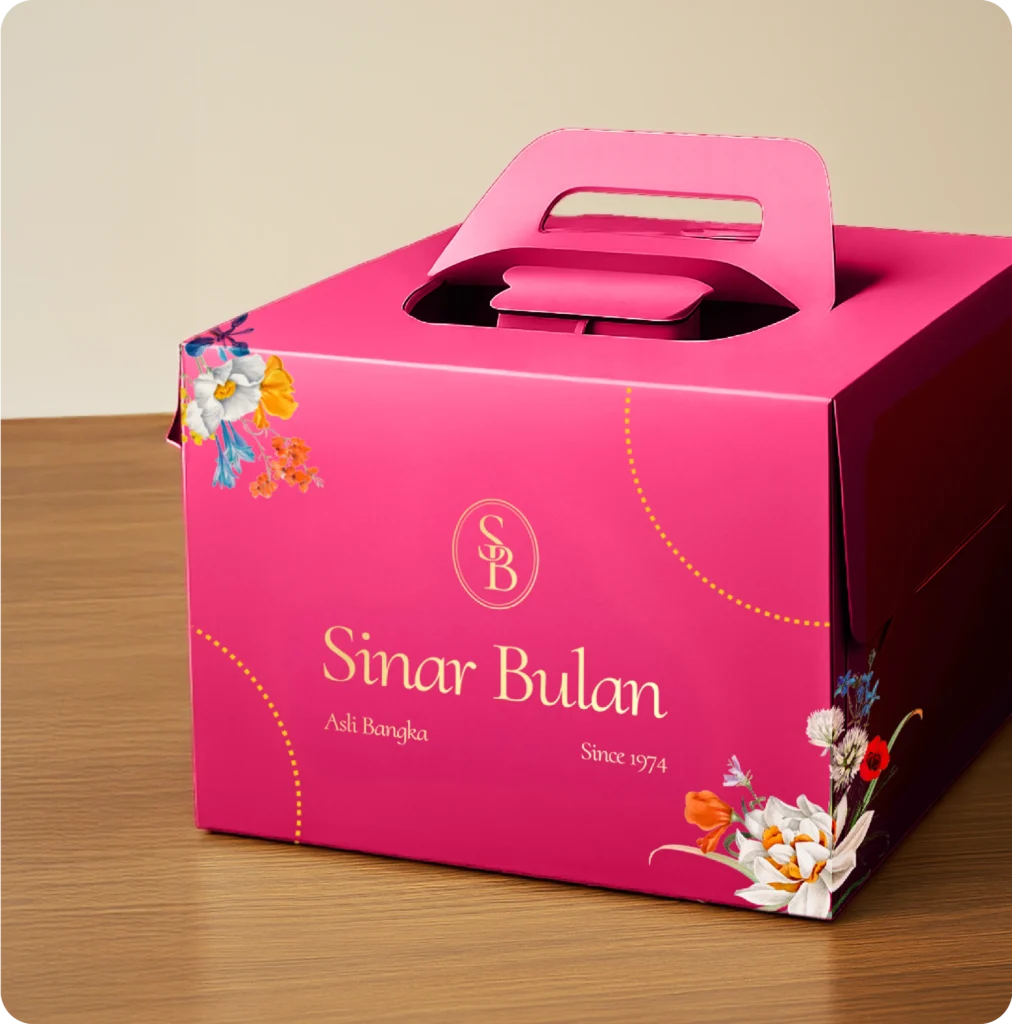 Setiap detail visual menyuarakan karakter Sinar Bulan sebagai brand kuliner legendaris yang memadukan nilai warisan dengan sentuhan elegan masa kini.