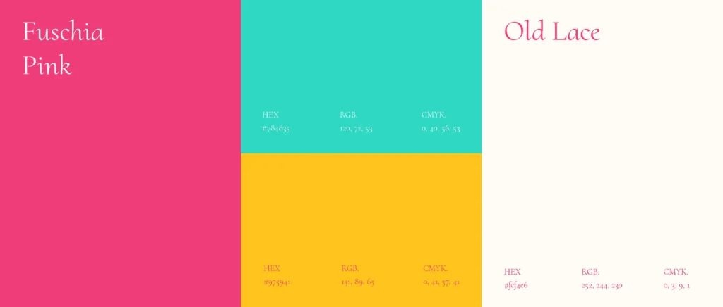 Color palette fuchsia pink, turquoise, dan yellow mango mencerminkan semangat dan jiwa perayaan khas Bangka. Putih memberikan kesan bersih dan lembut sebagai penyeimbang. Kombinasi ini menghadirkan kehangatan, tradisi, dan energi positif khas Sinar Bulan.