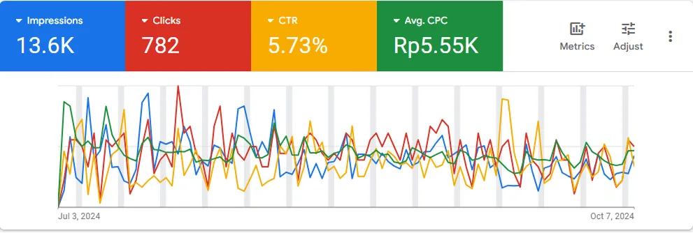 Selama periode kampanye Meta Ads untuk Vitablitz, CTR mereka stabil di angka 5,73% menunjukkan performa ads yang konsisten dan efektif dalam menarik perhatian audiens yang relevan. Selain itu, biaya per klik (CPC) hanya sebesar Rp5.550 yang tergolong sangat efisien dan membuktikan campaign ini berhasil menjangkau target dengan budget yang optimal.